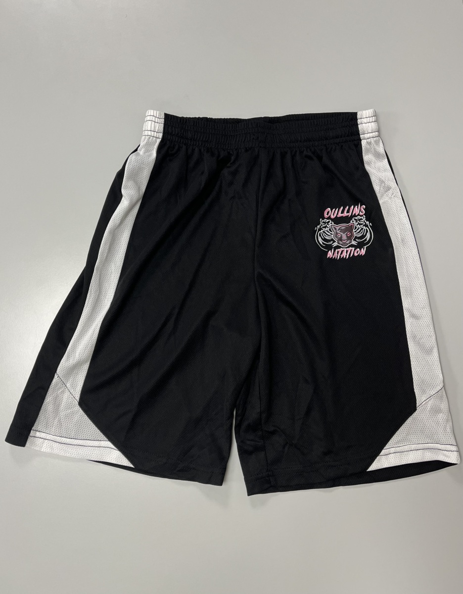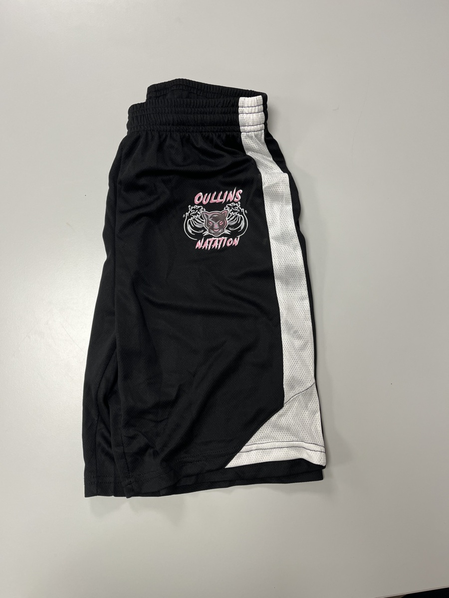 Short de sport noir et blanc en polyester respirant. Logo du club sur la jambe droite.